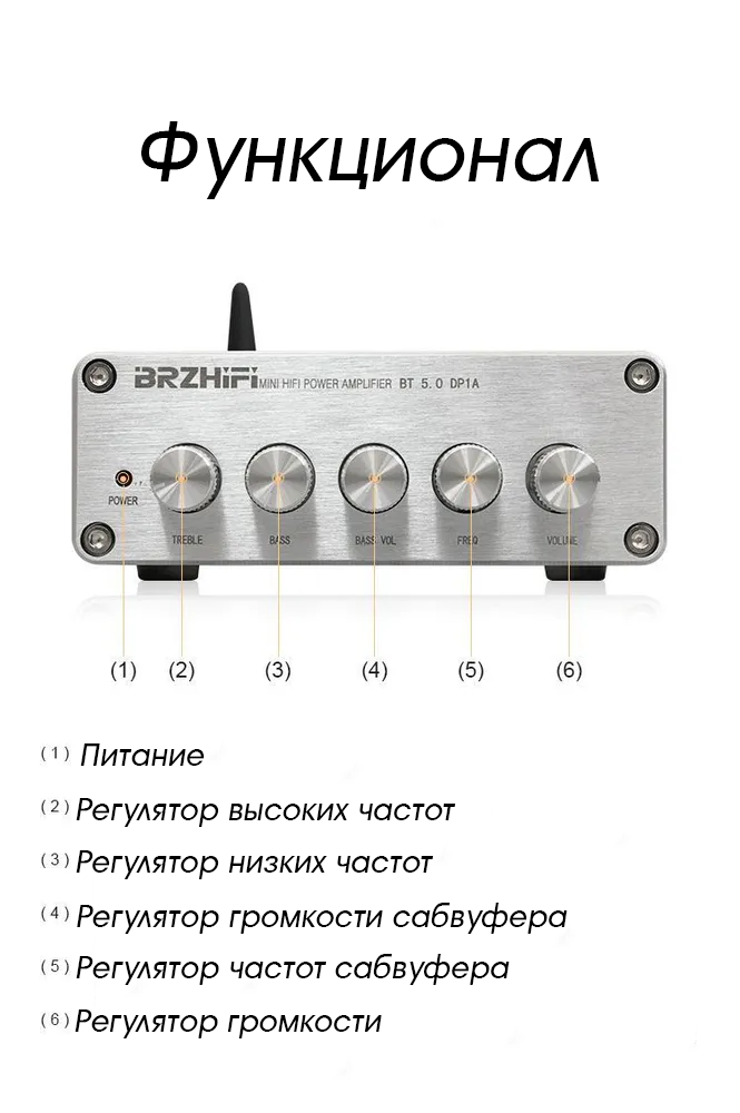 Аудио усилитель мощности BReeZe HiFi DP1 класс D чип TPA3116 4-16 Ом 100Вт Выход на сабвуфер 100Вт, BT, с темброблоком и Блоком Питания в комплекте интересное: