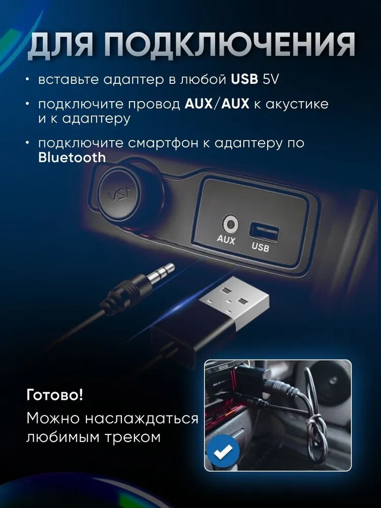 | Дополнительная информация | автомобильный адаптер aux, передача до 10 м |
