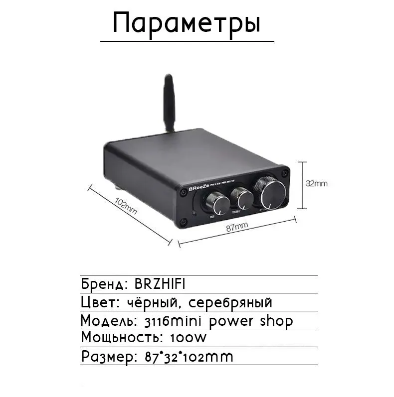 Аудио усилитель мощности BReeZe HiFi MINI-1 TPA3116 2.0 BT5.0 100 Вт 4-8 Ом с темброблоком, вход AUX в комплекте с блоком питания интересное: