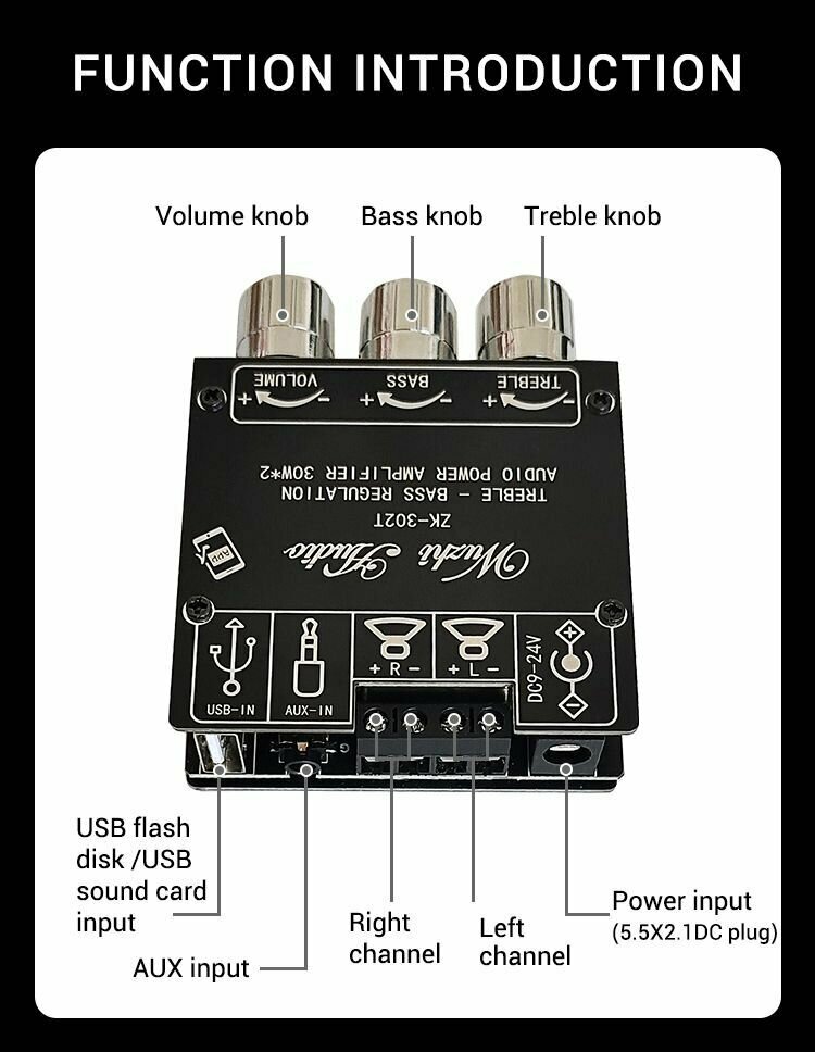 | Дополнительная информация | Усилитель мощности; усилитель Bluetooth; ZK-302T; Усилитель звука 2X30 Вт; Цифровой усилитель мощности; плата Bluetooth; декодер блютус. Stereo |