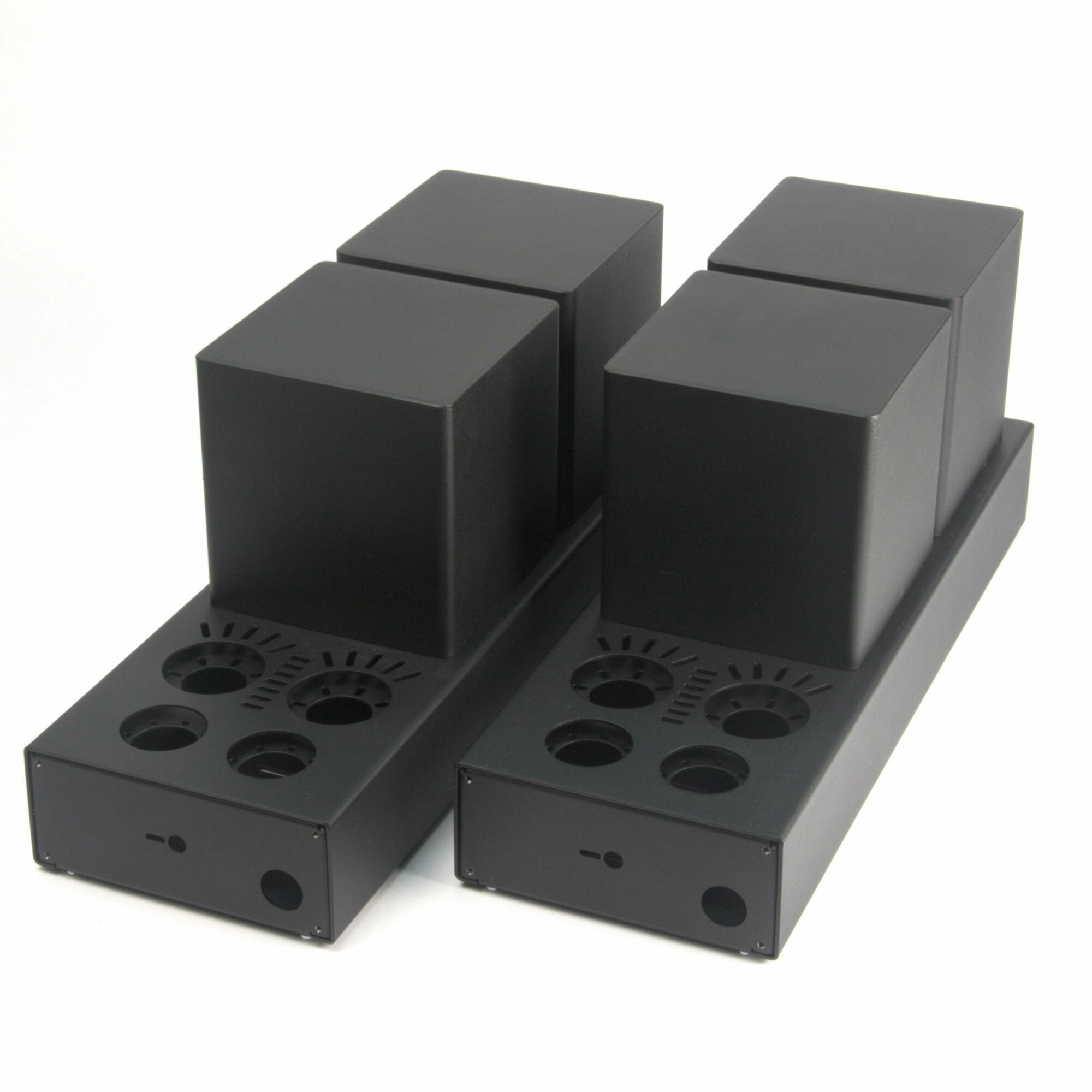 | Комплектация | 1. Шасси=2шт 2. Монтажная панель=2шт 3. Колпаки (кожухи) трансформаторов=4шт 4. Нижняя крышка=2шт 5. Метизы (винты крепления)=комплект |