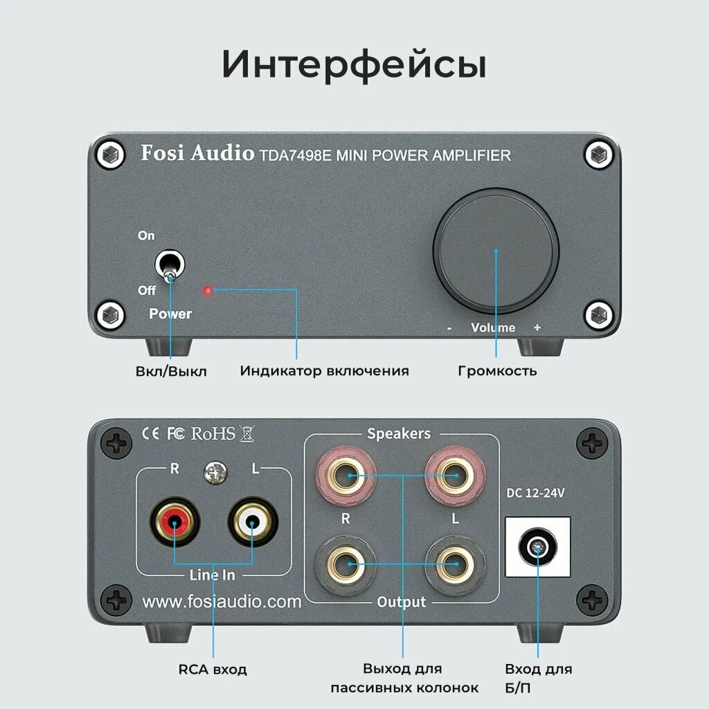 Усилитель для колонок Fosi Audio TDA7498E с блоком питания 24В/5A интересное: