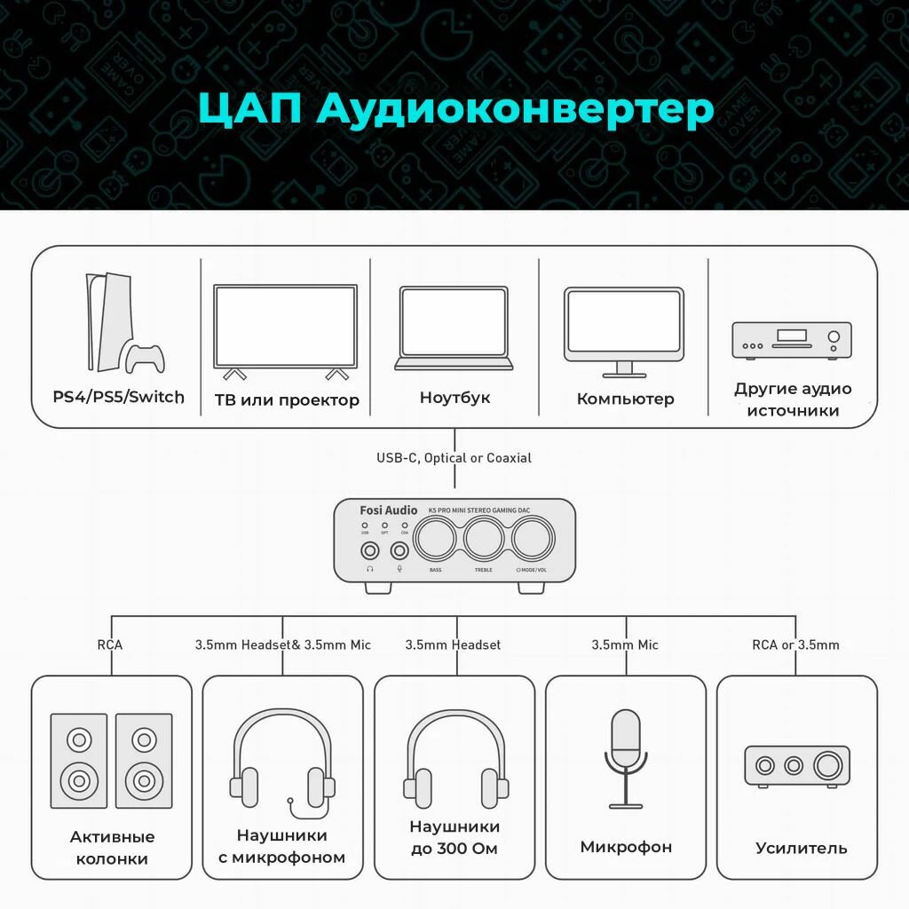 Игровой USB ЦАП с усилителем для наушников Fosi Audio K5 Pro интересное: