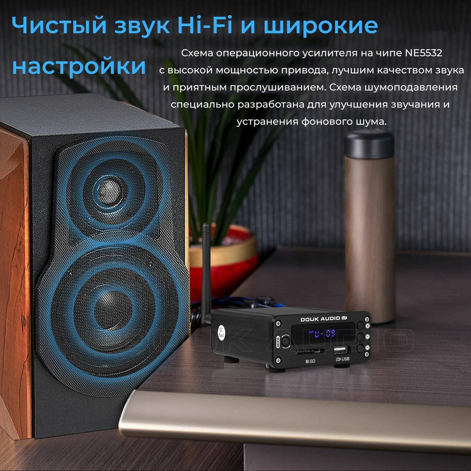 | Подробная комплектация | Douk Audio L7, Bluetooth антенна, FM антенна, кабель USB – USB Type-C, пульт ДУ |