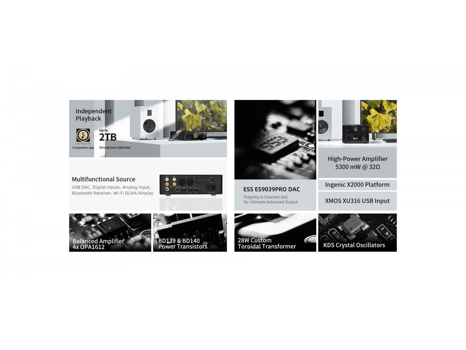 | Особенности | питание от USB, пульт ДУ, работа в режиме предусилителя |