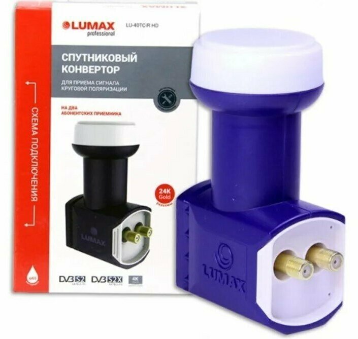Конвертер спутниковый Lumax LU-40TCIR, UHD 4K, для НТВ-Плюс и Триколор ТВ, 2 входа