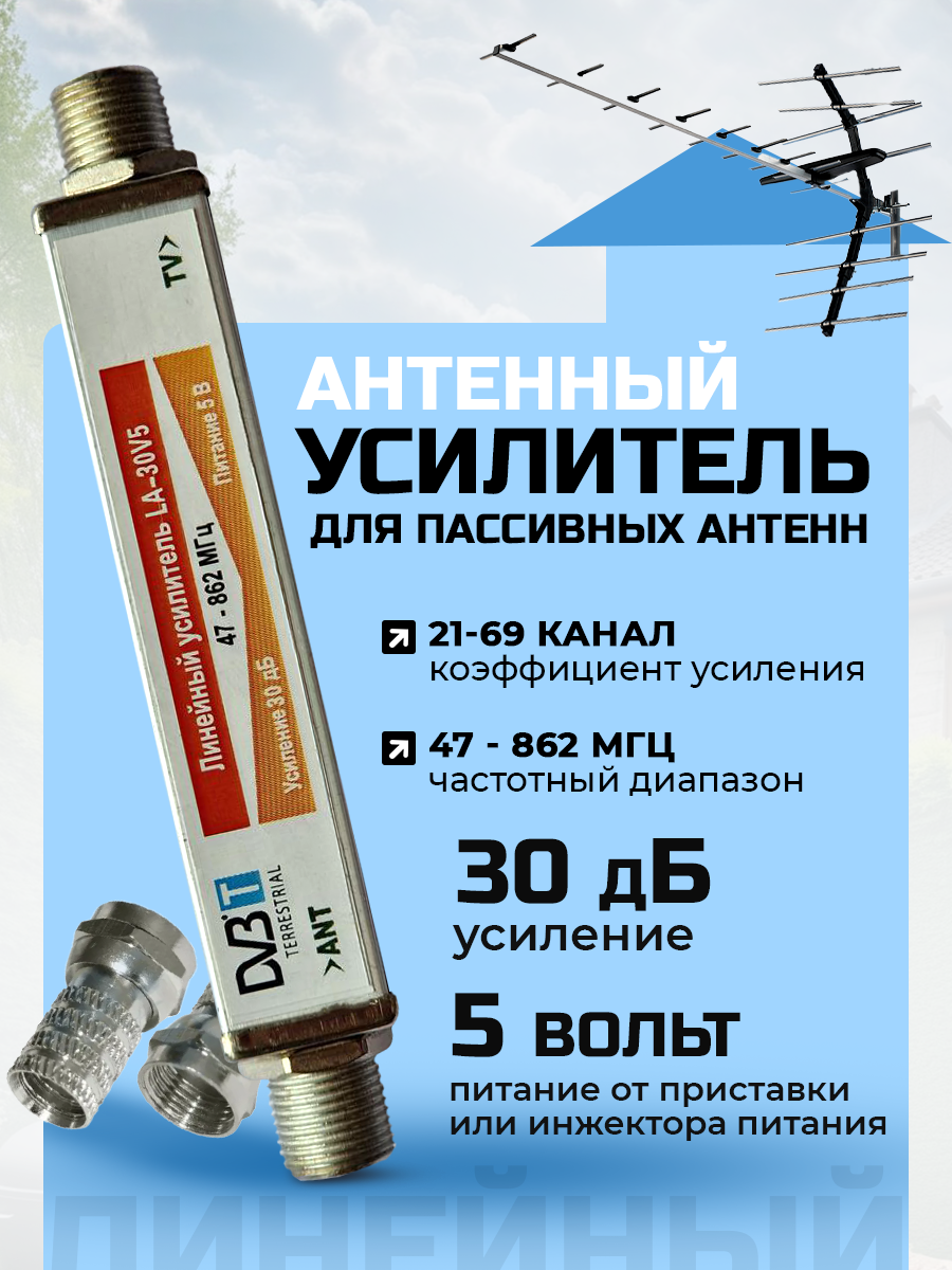 Усилитель ТВ сигнала линейный Zolan LA-30V5 для цифровых пассивных ТВ антенн DVB-T2, питание по антенному кабелю 5 В от ТВ приставки или инжектора интересное: