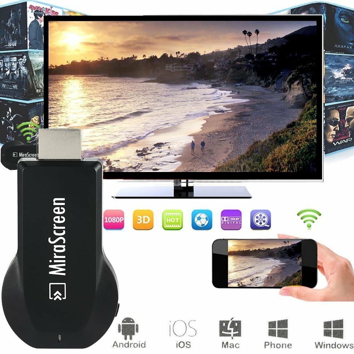 Купить Беспроводной WiFi приемник Mirascreen для подключения телефона / планшета к TV