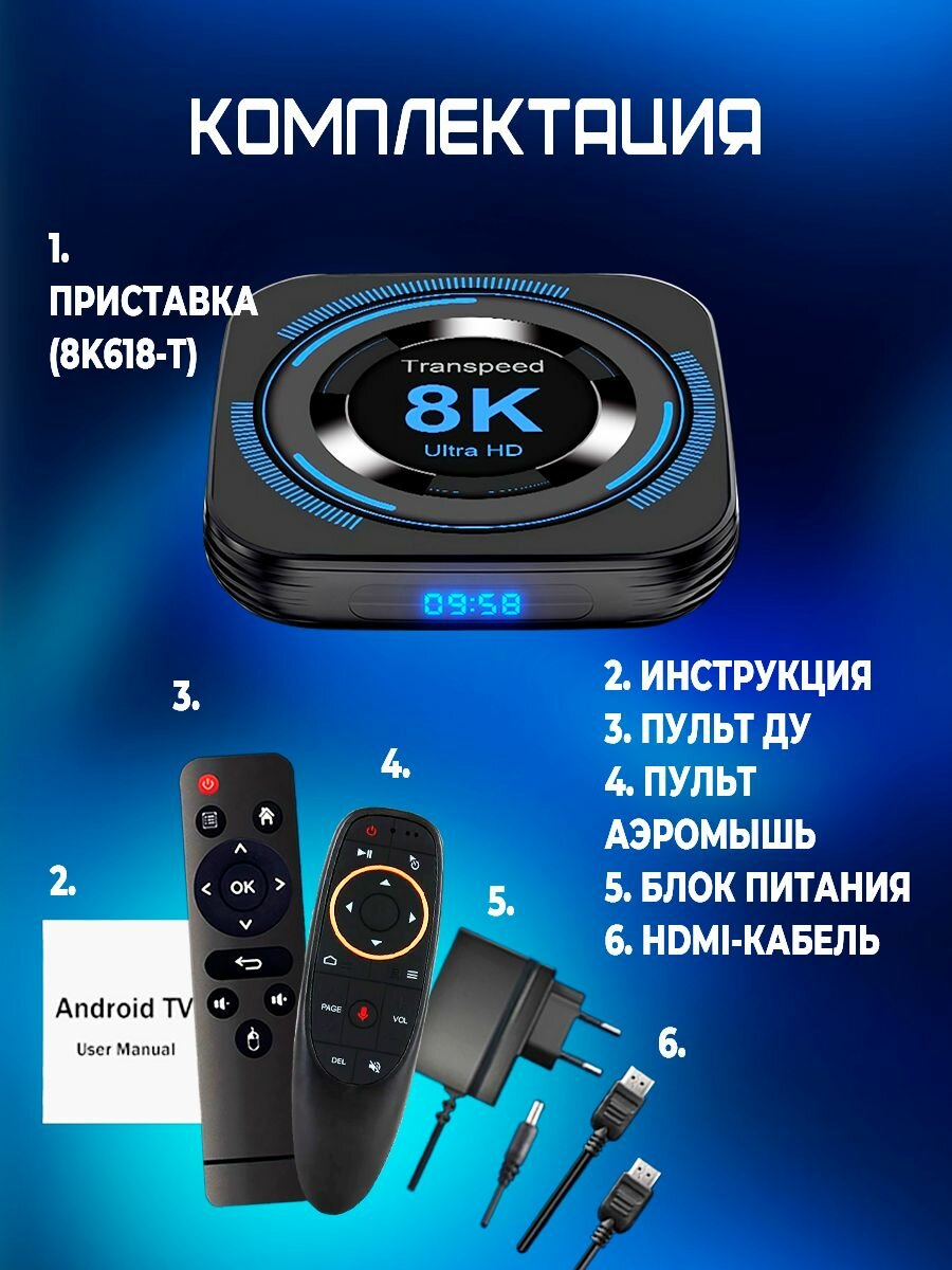Смарт ТВ приставка "Transpeed 8K" с голосовым управлением 4/64 Гб интересное: