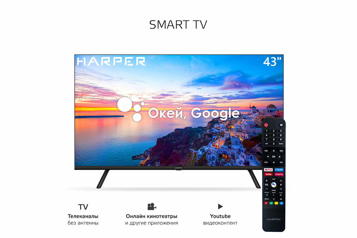 Телевизор HARPER 43F721TS, SMART (Android TV), черный интересное: