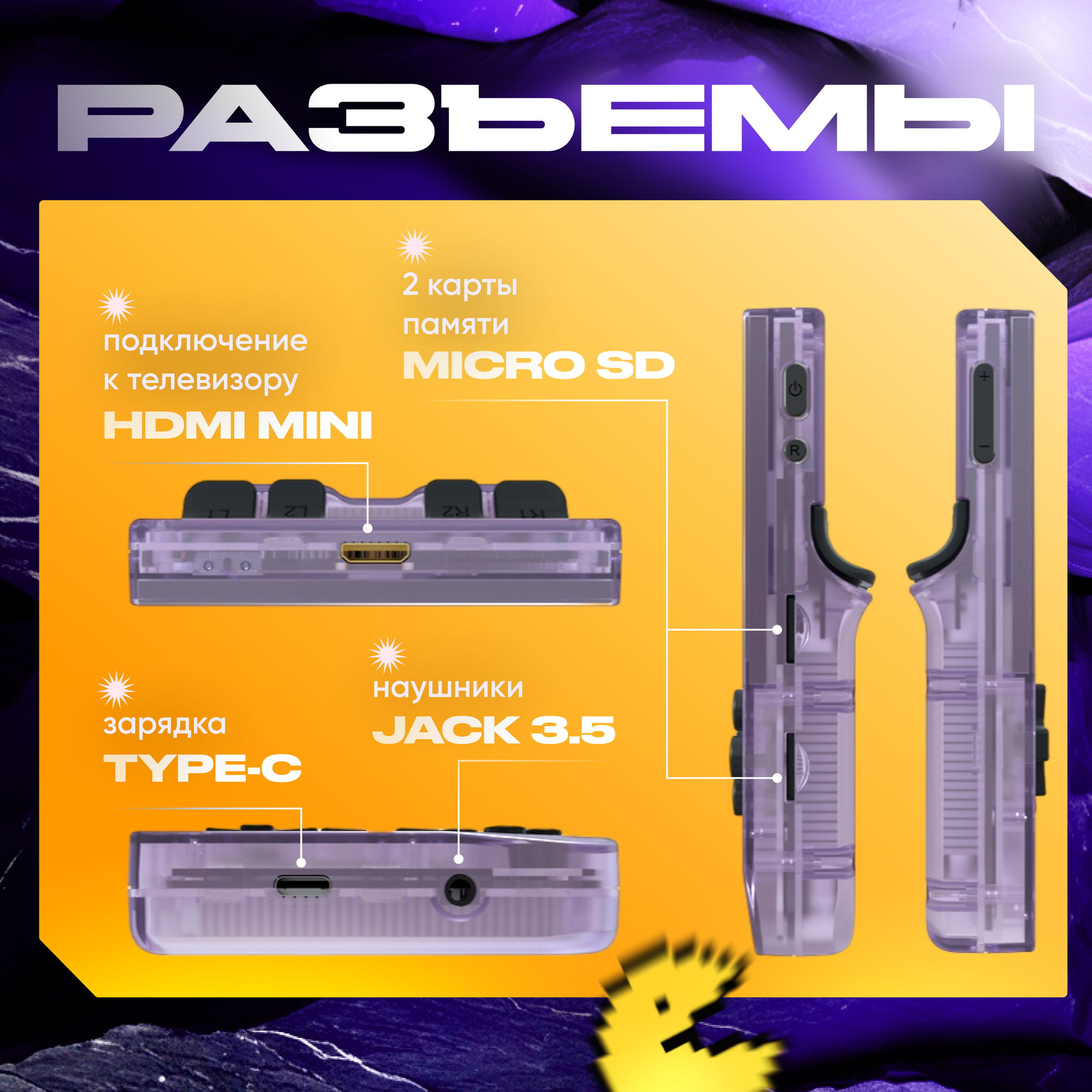 | Дополнительная информация | Комплектация - Игровой эмулятор RG35XX; - Карта памяти 64GB(вставлена в консоль); - Зарядный кабель USB-C; - Защитное стекло; - Инструкция; - Коробка |
