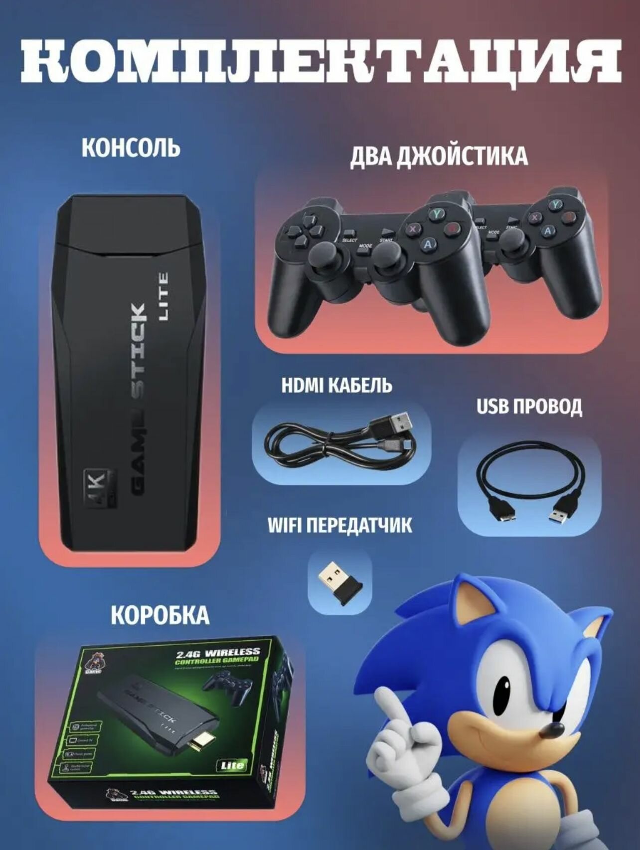 Игровая консоль приставка для телевизора Game Stick Lite/ ТВ/ TV приставка, 20 000 игр