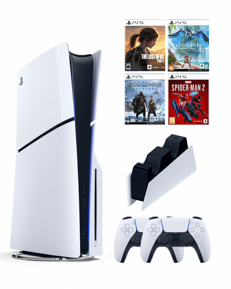 PS5 (ПС5) Приставка Sony Playstation 5 slim 1 Tb+2-ой геймпад(белый)+зарядное+Gog of War+ЧП2+HWF+TLOU