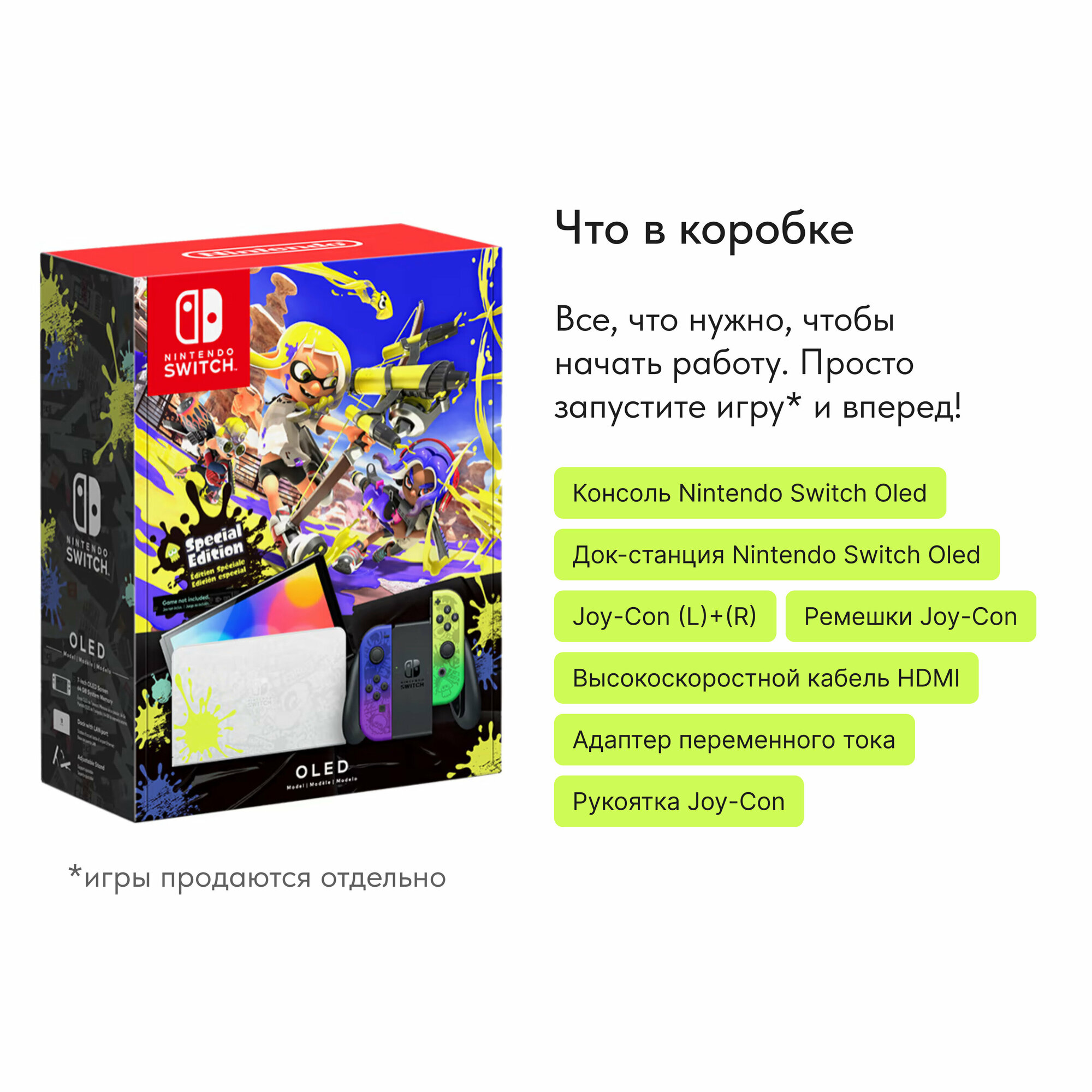 Игровая приставка Nintendo Switch с OLED-экраном Splatoon edition (без игр) интересное: