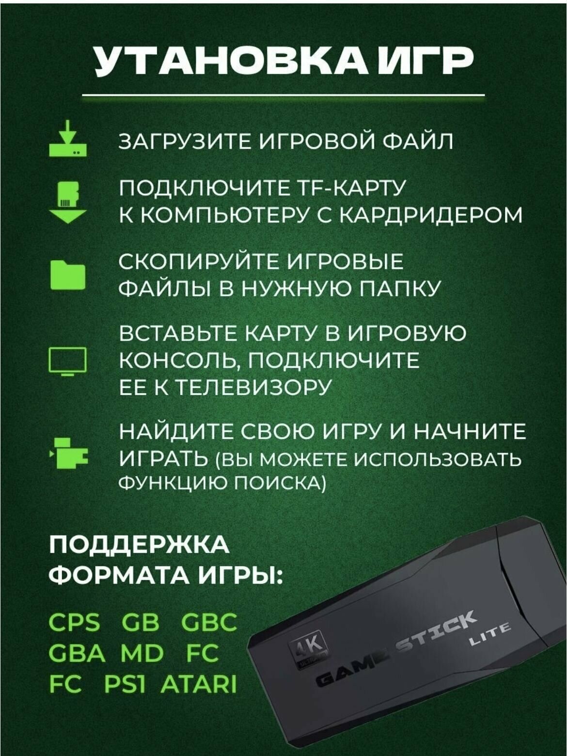 Игровая консоль приставка для телевизора Game Stick Lite/ ТВ/ TV приставка, 20 000 игр