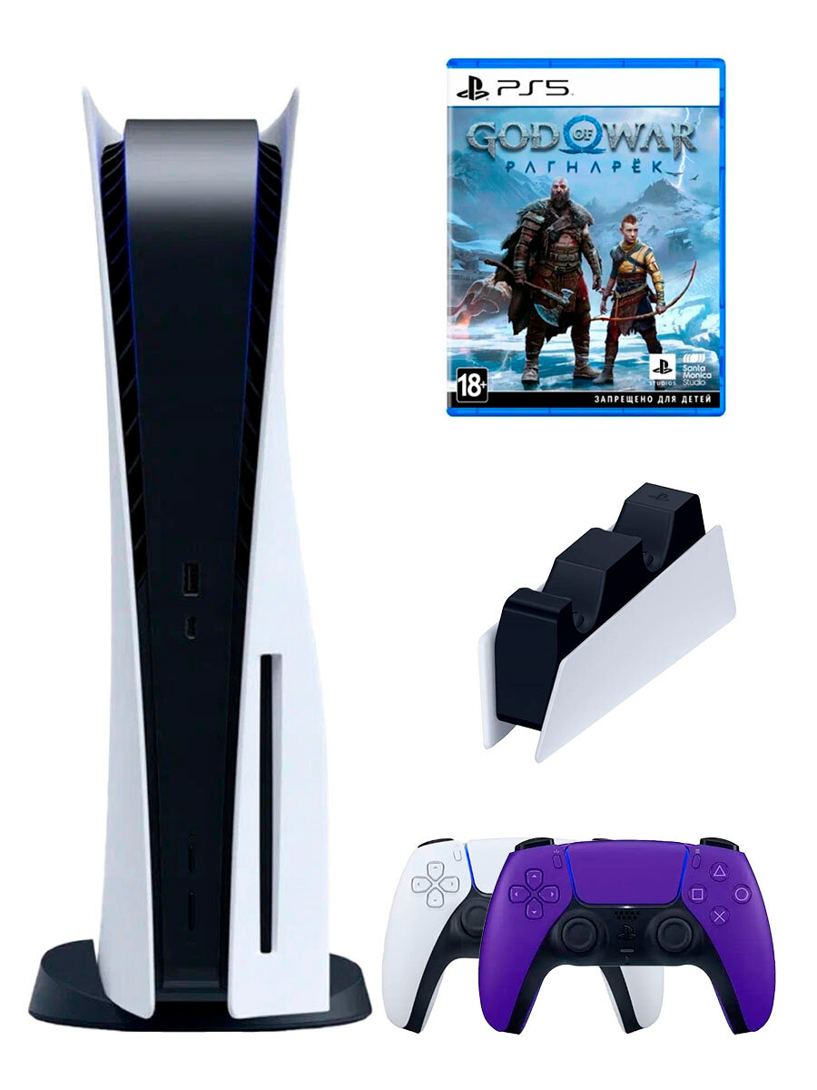 Купить PS5 (ПС5) Игровая приставка Sony PlayStation 5 ( 3-я ревизия) + 2-й геймпад(фиолетовый) + зарядное + игра God of War