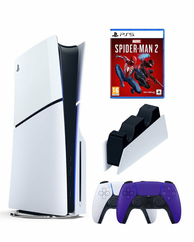 Купить Приставка Sony Playstation 5 slim 1 Tb+2-ой геймпад(пурпурный)+зарядное+Человек Паук 2