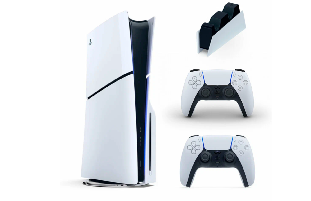 Игровая консоль PlayStation 5 Slim, без дисковода, 1 ТБ, два геймпада + зарядная станция интересное:
