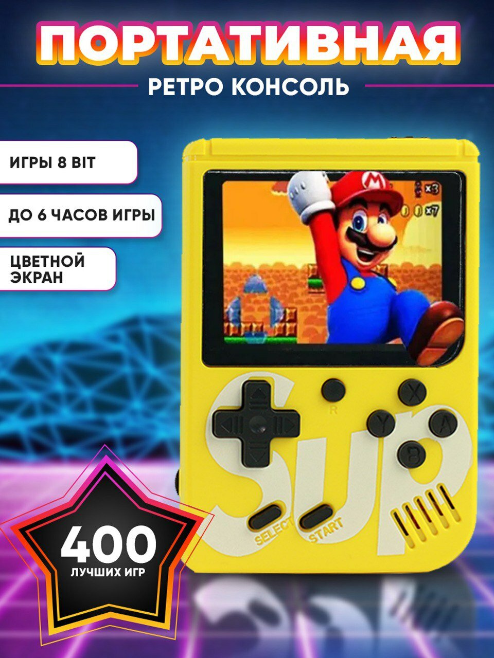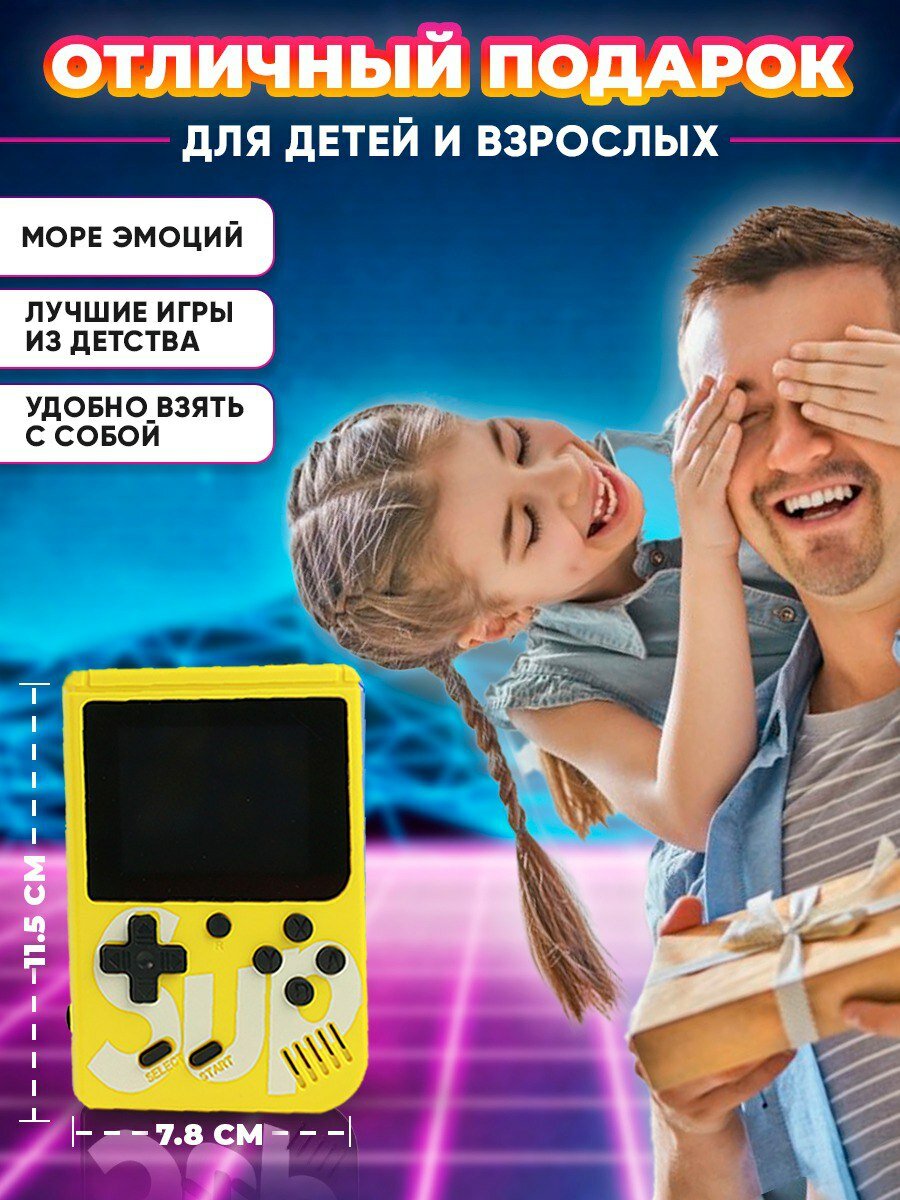 Портативная игровая приставка SUP GAME BOX 400игр в 1, 8 bit, желтый интересное: