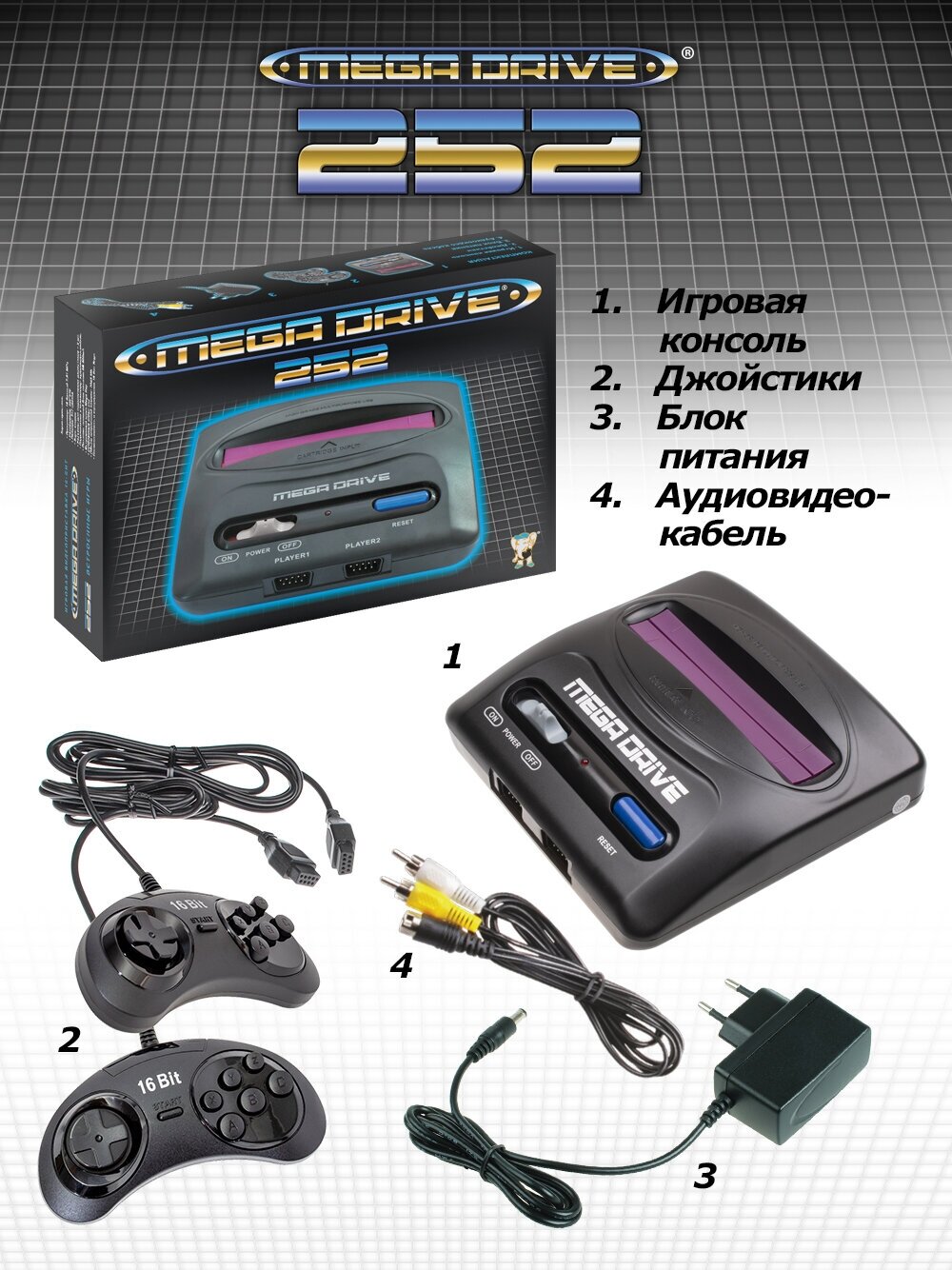 Игровая приставка 16-бит Mega Drive 2 lit 252 встроенные игры / Ретро консоль 16 bit Сега / Для телевизора интересное: