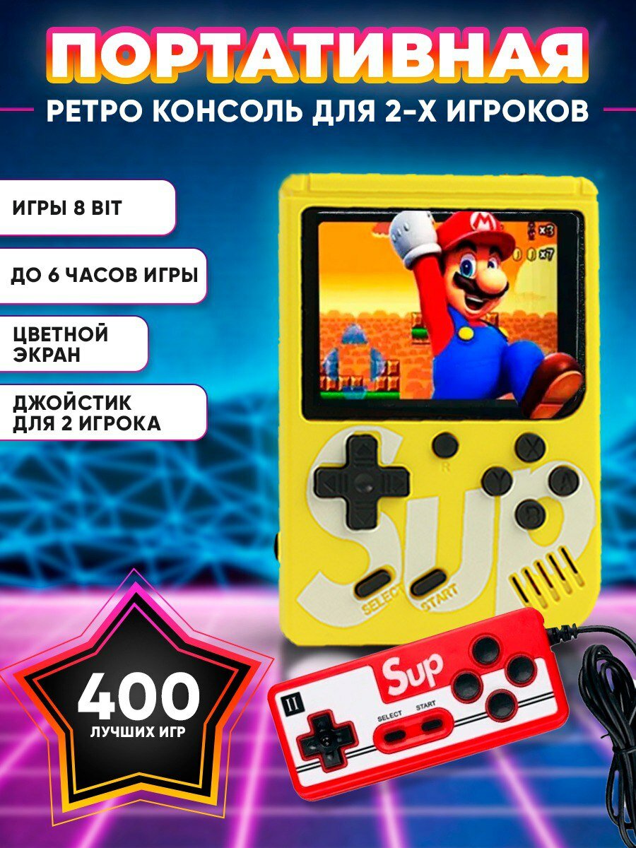 Портативная игровая приставка SUP GAME BOX 400игр в 1, 8 bit, желтый + дополнительный геймпад интересное:
