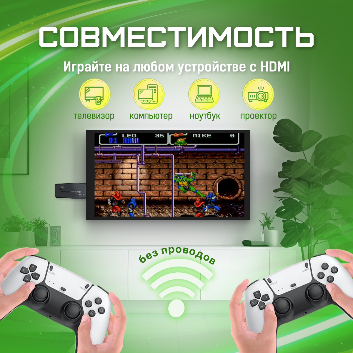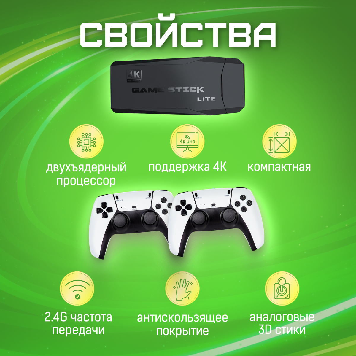 Игровая приставка, консоль Game Stick Lite 64Gb, 3555 игр, 4K, 2,4 ГГц, 8 бит, 16 бит, 32 бит