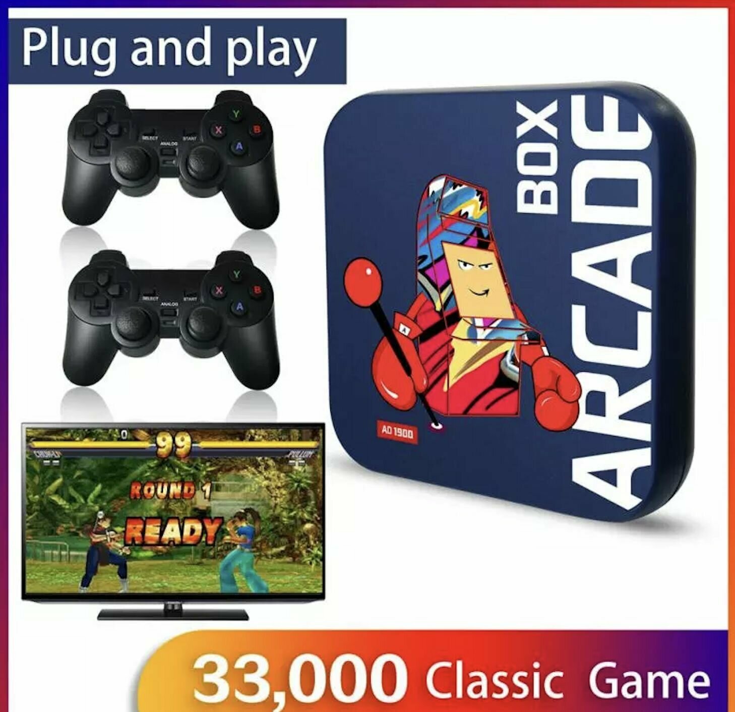 Купить NEW консоль ARCADE 33000 игр, поддержка 50+ эмуляторов, 4K HD video+AV, box, синий