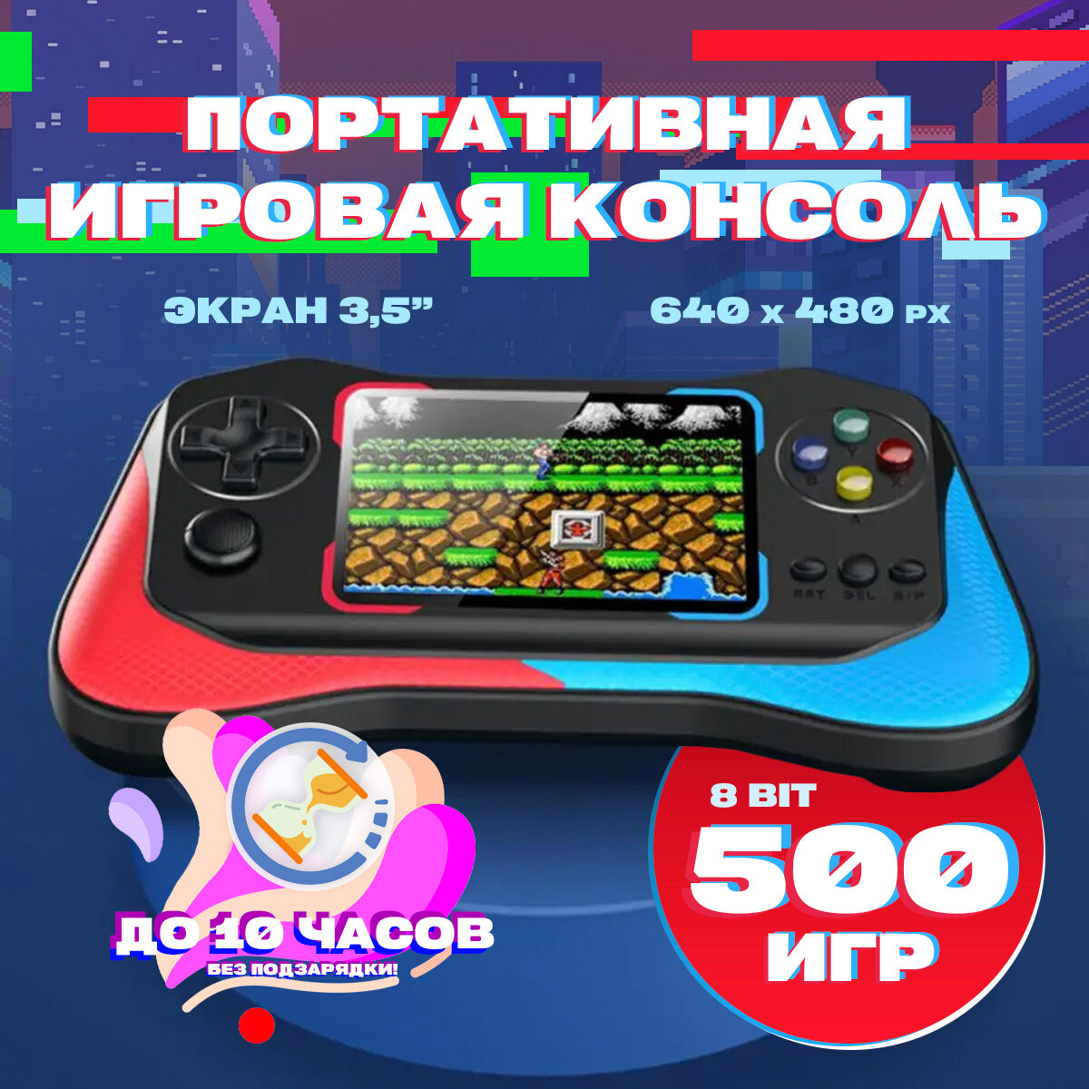 Купить Портативная игровая консоль Anytrends Game Joystick Q12 8bit (500 игр Nintendo, экран 3,5 дюйма, AV-кабель для телевизора)