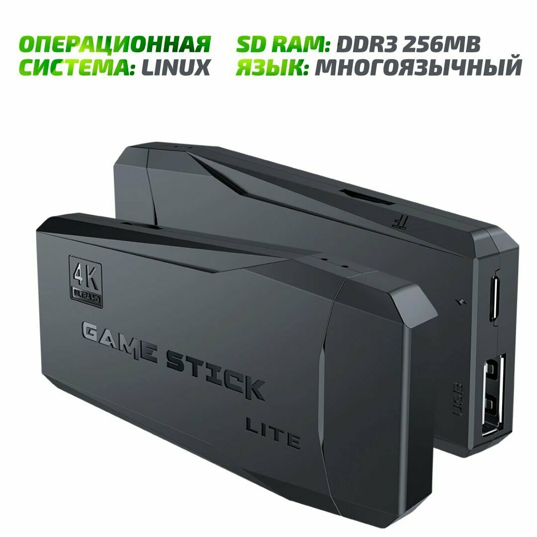 Игровая приставка, консоль Game Stick Lite 64Gb, 3555 игр, 4K, 2,4 ГГц, 8 бит, 16 бит, 32 бит