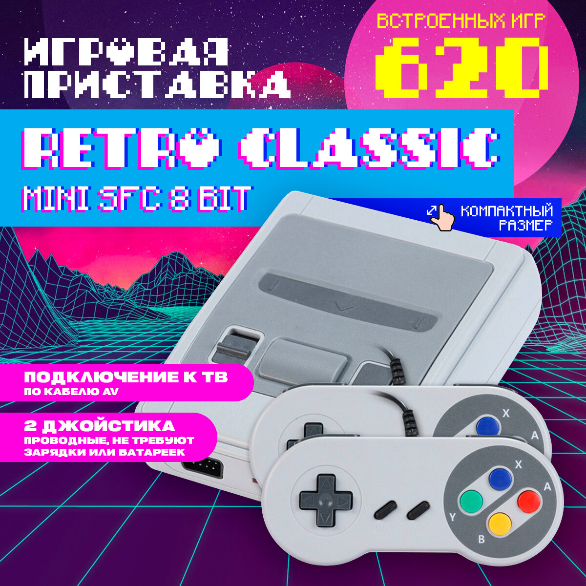 Купить Игровая приставка для телевизора Anytrends Retro Classic Mini SFC 8bit (620 игр, AV-кабель для телевизора) + 2 проводных джойстика