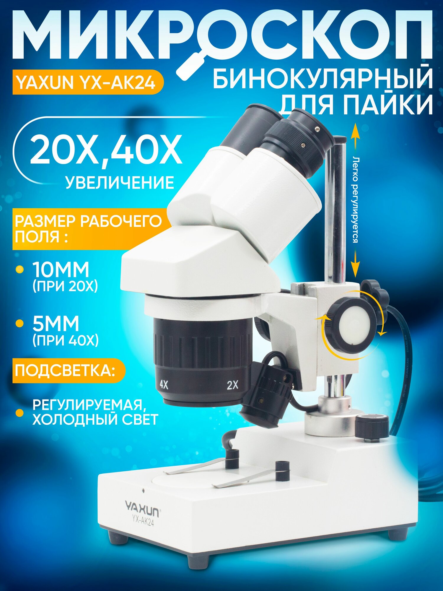 Микроскоп YA XUN YX-AK24 (бинокулярный, стереоскопический, с подсветкой)