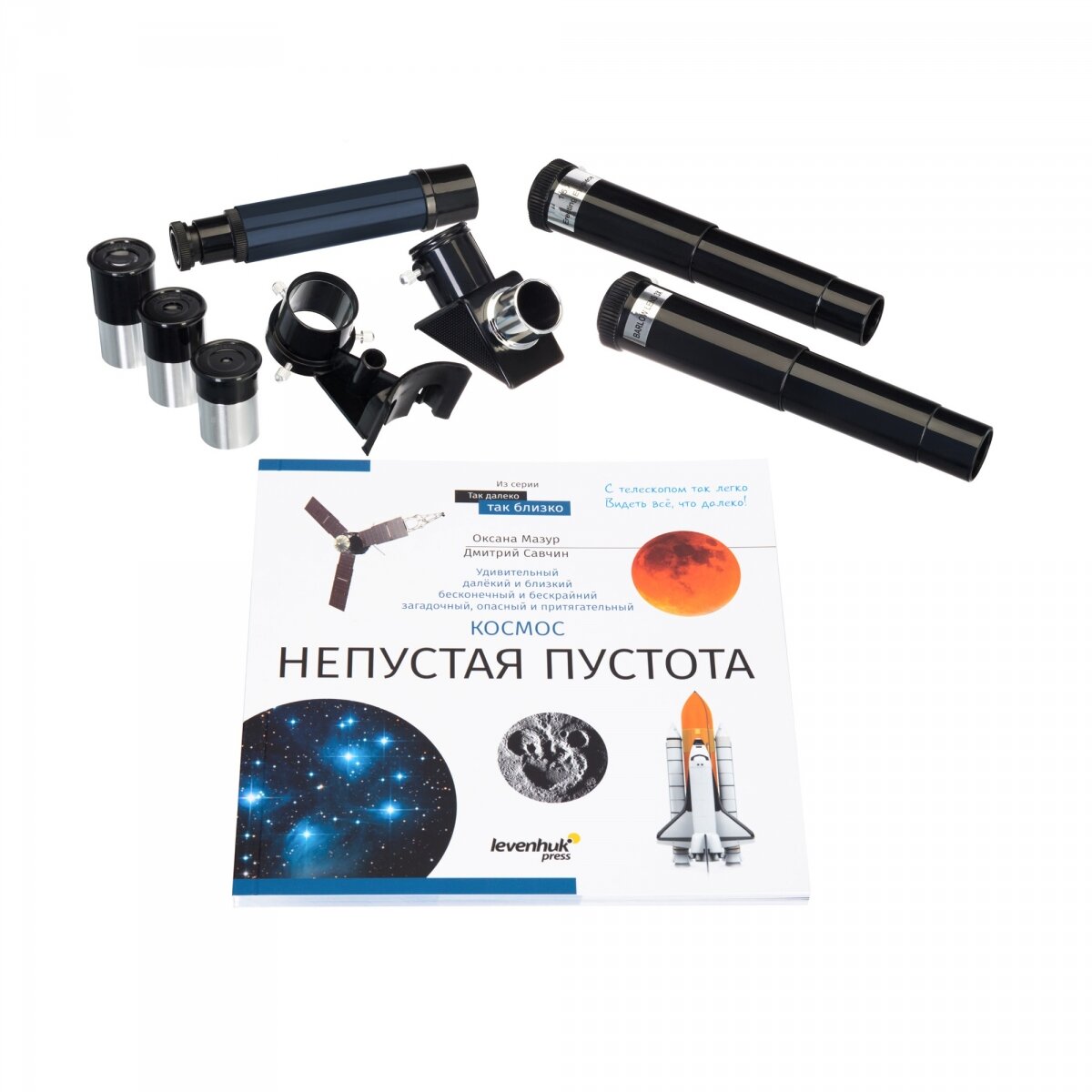 | Комплектация | оптическая труба телескопа, окуляр SR4 мм, окуляр H12,5 мм, окуляр H20 мм, оборачивающий окуляр 1,5х, диагональное зеркало 90°, линза Барлоу 3х, оптический искатель 5х24, азимутальная монтировка, алюминиевая тренога с лотком для аксессуаров, книга знаний «Космос. Непустая пустота», инструкция по эксплуатации и гарантийный талон |
