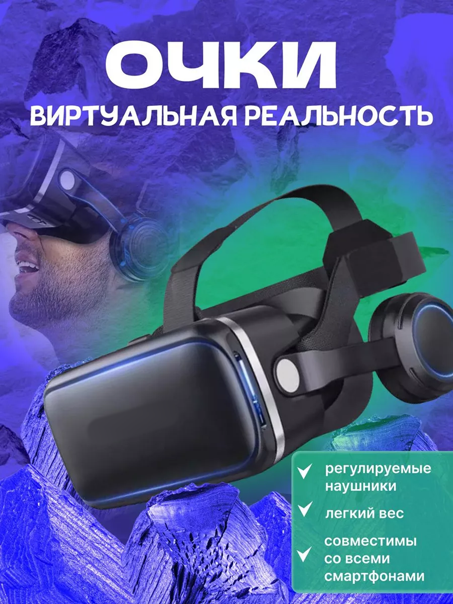Купить 3D очки виртуальной реальности для смартфонов, с наушниками