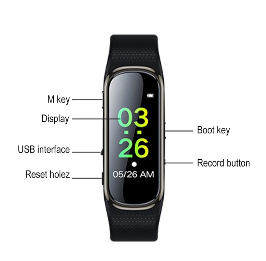 Купить Цифровой диктофон фитнес браслет A8 со встроенной память 8GB (96 ч. записи)/ запись во время зарядки/ запись по датчику звука