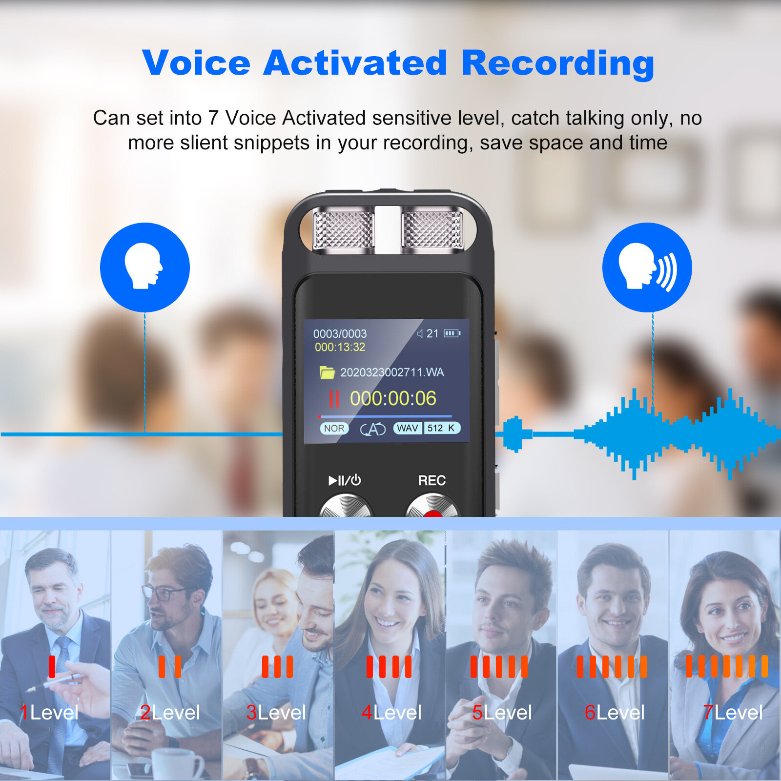 Купить Цифровой диктофон со встроенным динамиком и дисплеем SV-140, 8GB + 64 GB памяти, датчик звука, запись по таймеру, мониторинг, металлический корпус