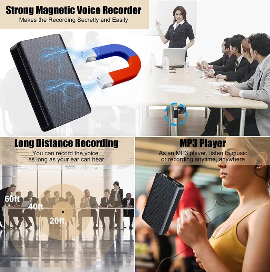 Магнитный диктофон MaG-020 1750mAh, встроенная память 8GB, 380 часов записи, датчик звука, шумоподавление, запись во время зарядки интересное: