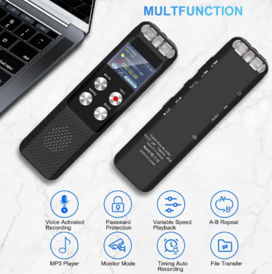 Мини диктофон SPEC-04D с дисплеем, со встроенной памятью 8GB, SD карта памяти до 64 GB, емкость аккумулятора 500 mAh проработает 11 ч. интересное: