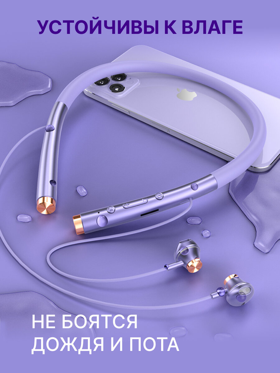 СохранитьНаушники беспроводные блютуз с микрофоном спортивные для бега на шею (WI фиолетовые) интересное:
