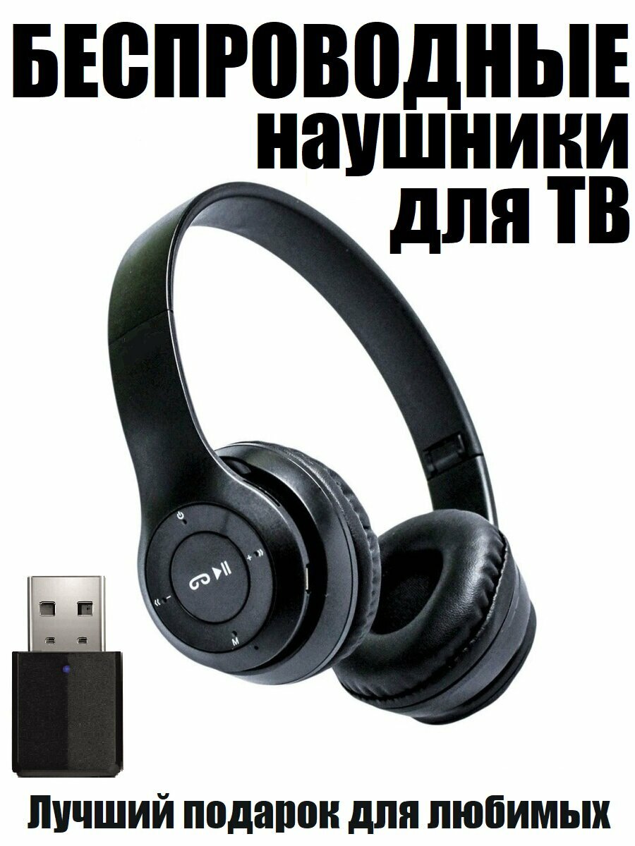 Купить Беспроводные наушники + Bluetooth адаптер для подключения к телевизору. Наушники для телевизора без проводов, цвет черный