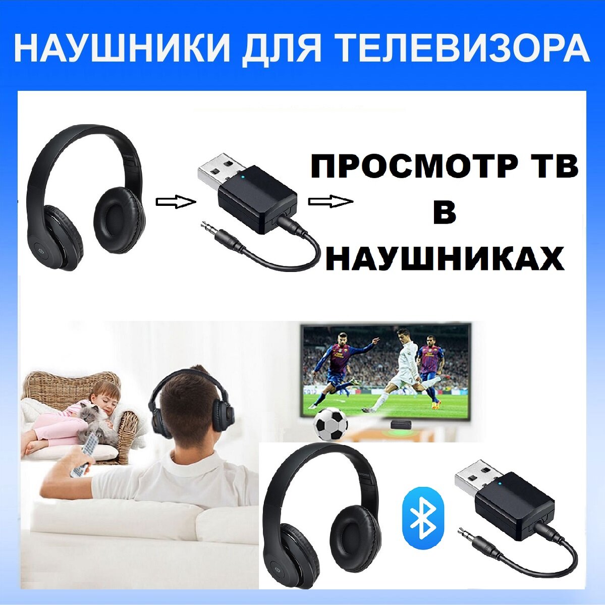 Беспроводные наушники + Bluetooth адаптер для подключения к телевизору. Наушники для телевизора без проводов, цвет черный интересное:
