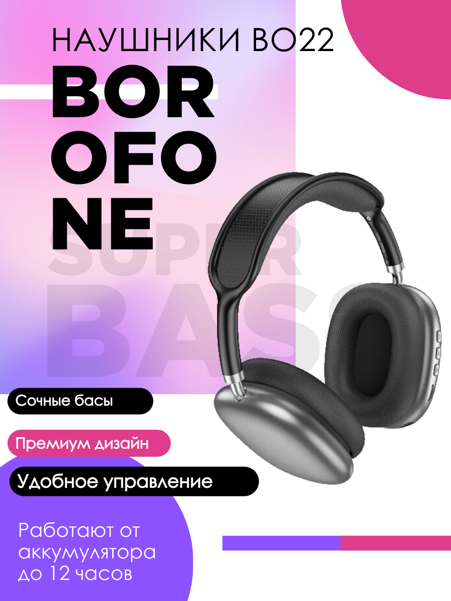 Беспроводные наушники накладные BOROFONE BO22 Elegant, Bluetooth, серый