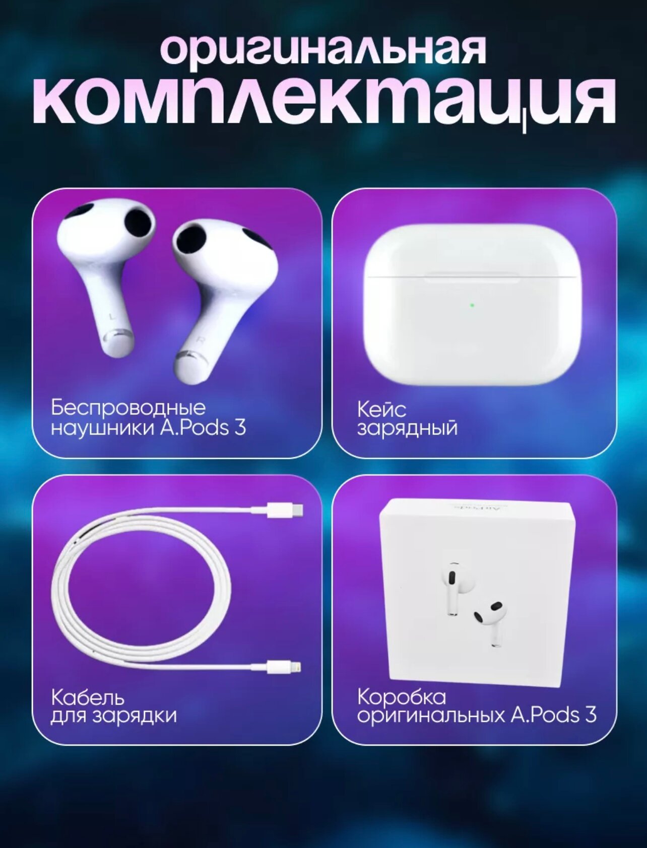 Ниже Вы можете прочитать отзывы на Наушники беспроводные A Pods 3 (Lightning Charging Case), белый, ознакомится с подробными характеристиками, посмотреть интересные обзоры и фотографии на Наушники беспроводные A Pods 3 (Lightning Charging Case), белый.