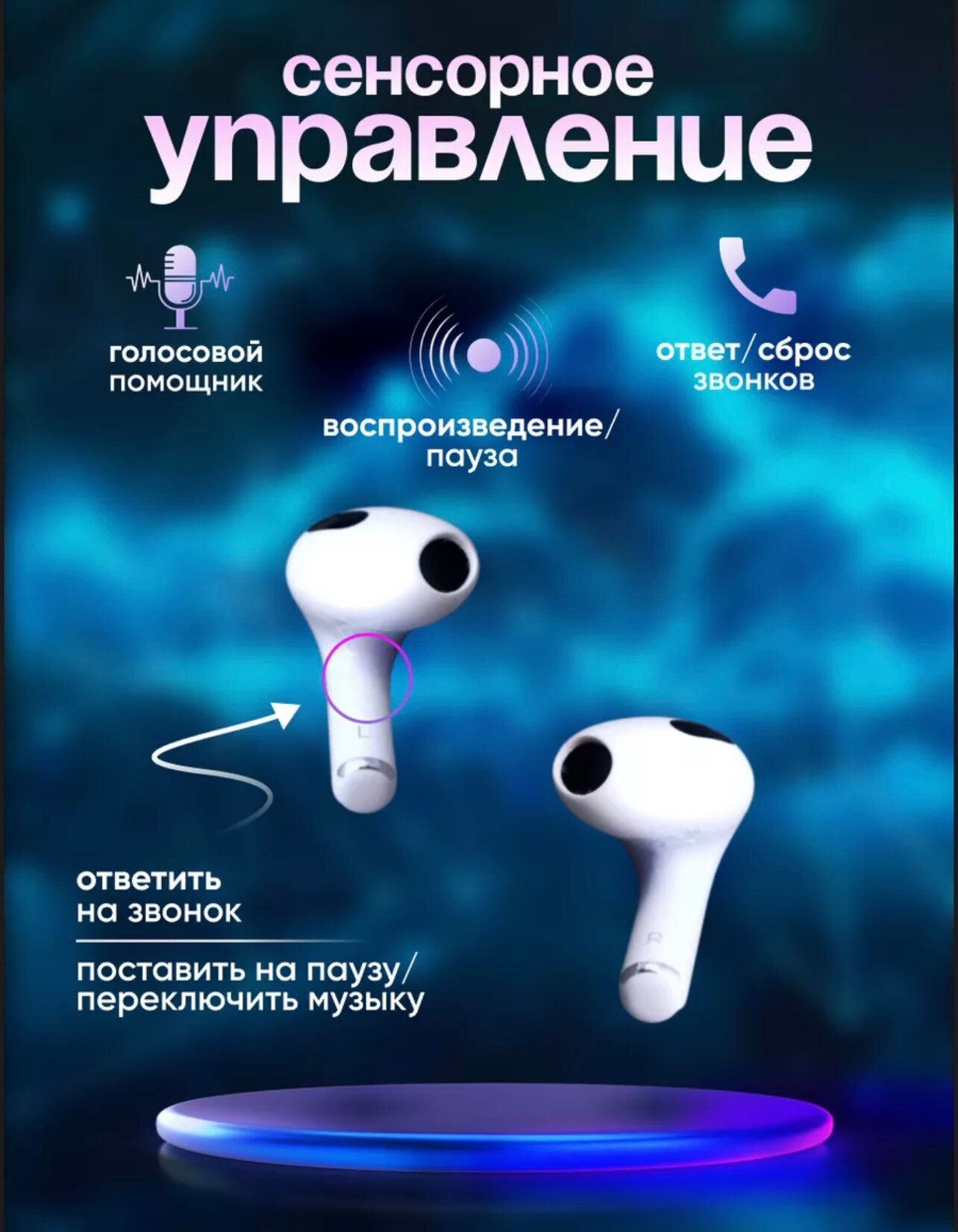 Наушники беспроводные A. Pods 4 PREMIUM, Активное шумоподавление, Bluetooth, USB Type-C