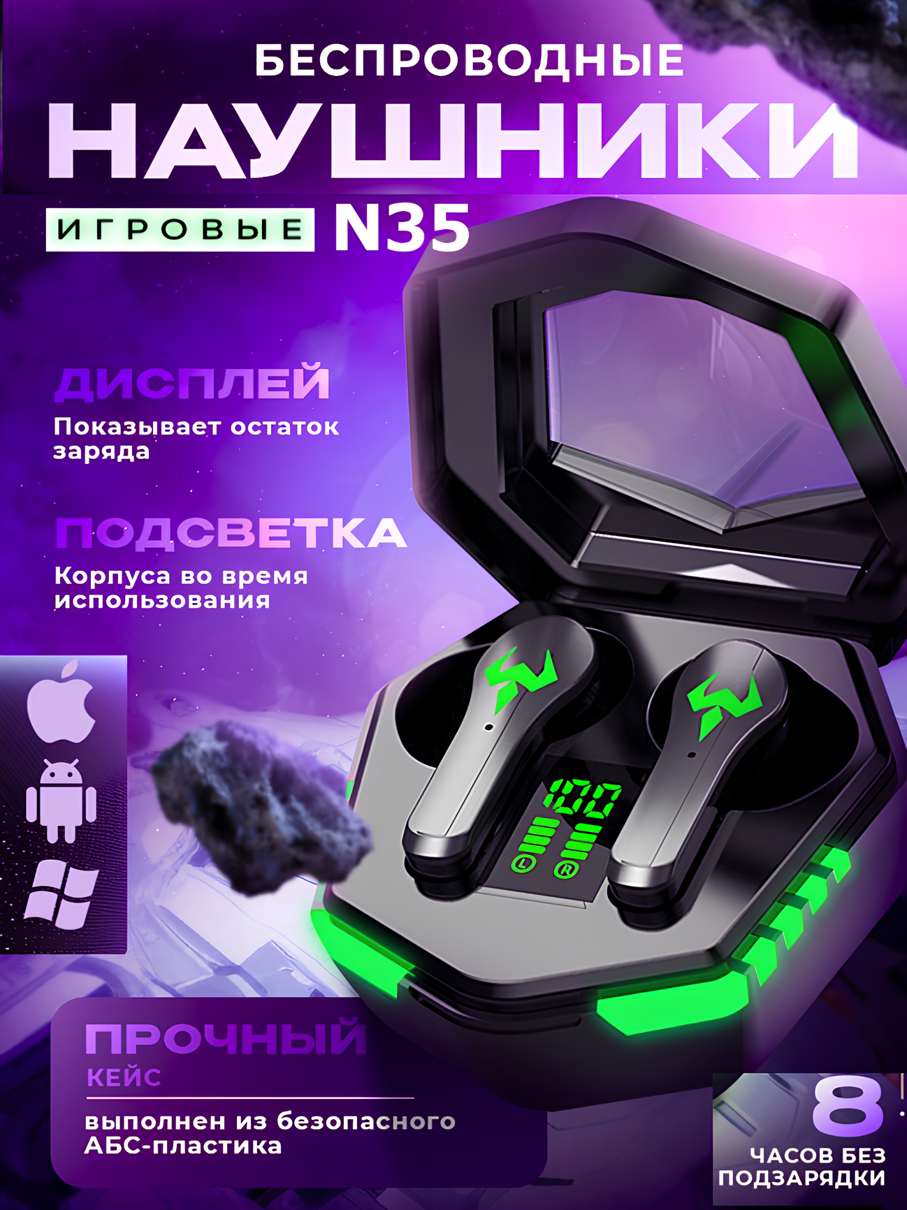 Наушники игровые беспроводные N35 X. Качественный звук. интересное: