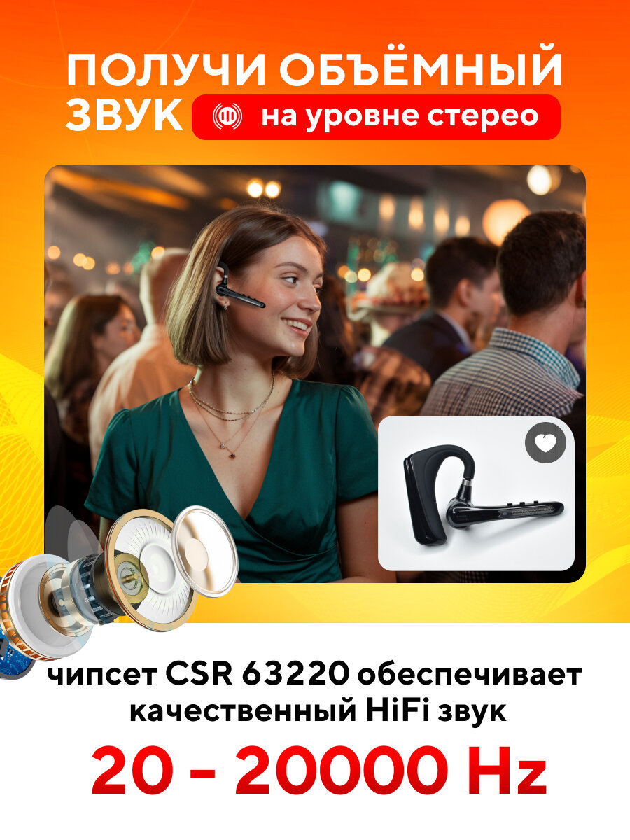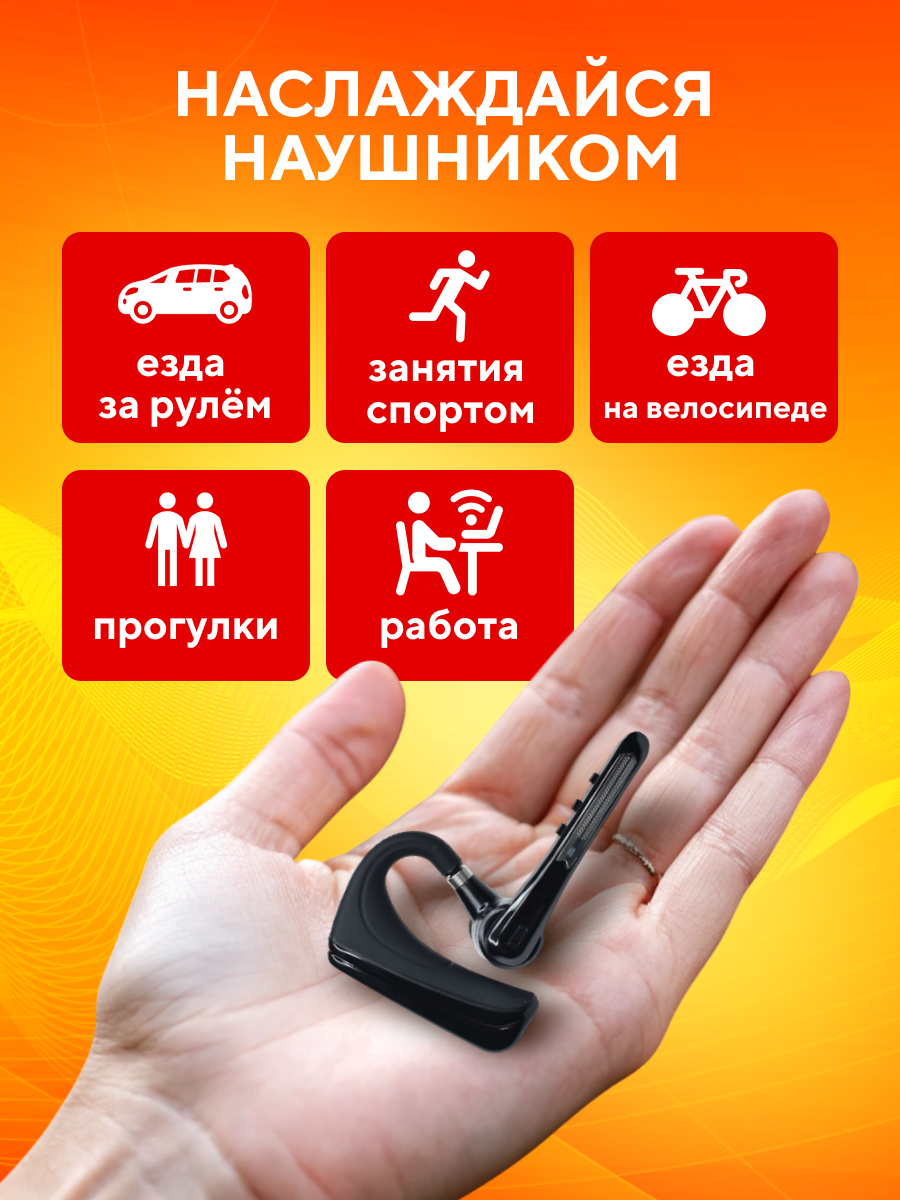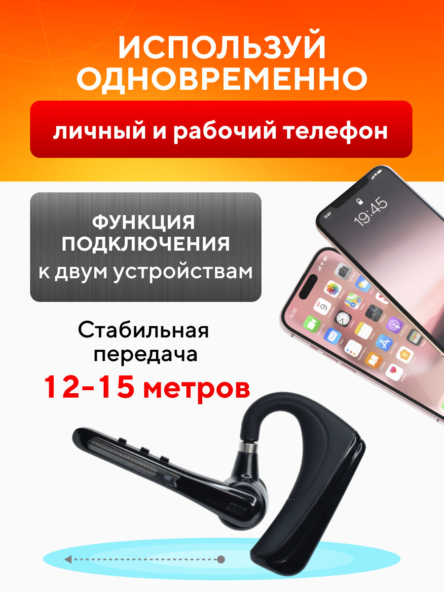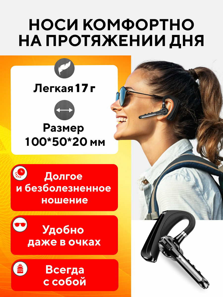 Гарнитура наушник беспроводная TAYMLUX HSP-B3 Бизнес-класса, Bluetooth v5.0 с микрофоном, 16 часов в режиме разговора, для 2-х телефонов, черная интересное: