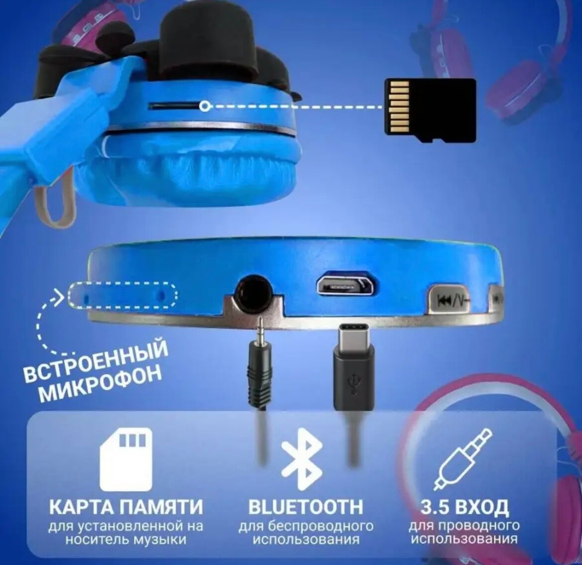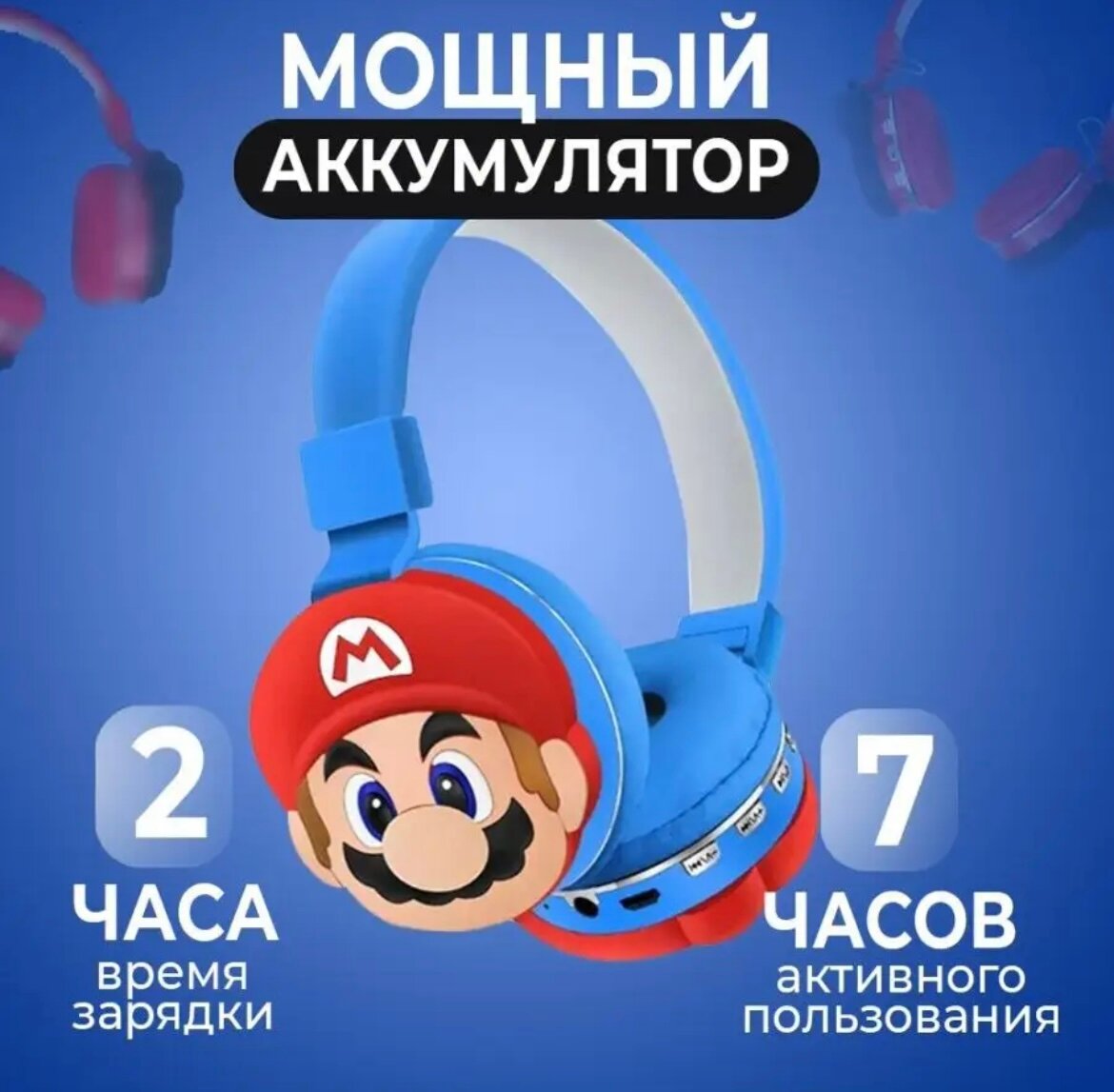 Детские беспроводные наушники SuperMario blue интересное:
