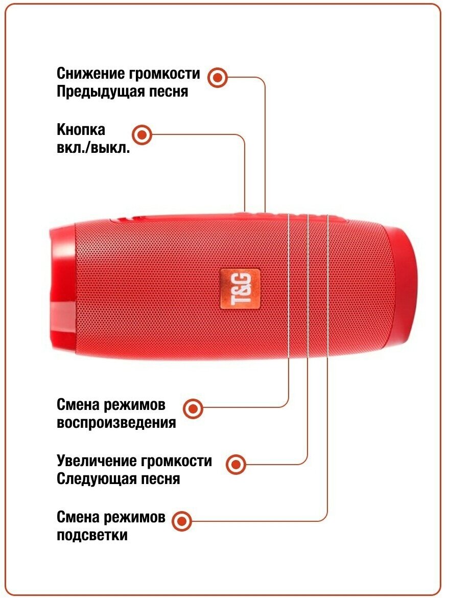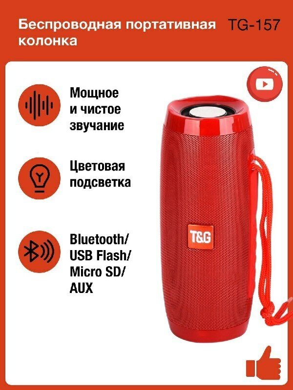 Беспроводная Bluetooth колонка TG-157, Портативная колонка с LED подсветкой, красный интересное: