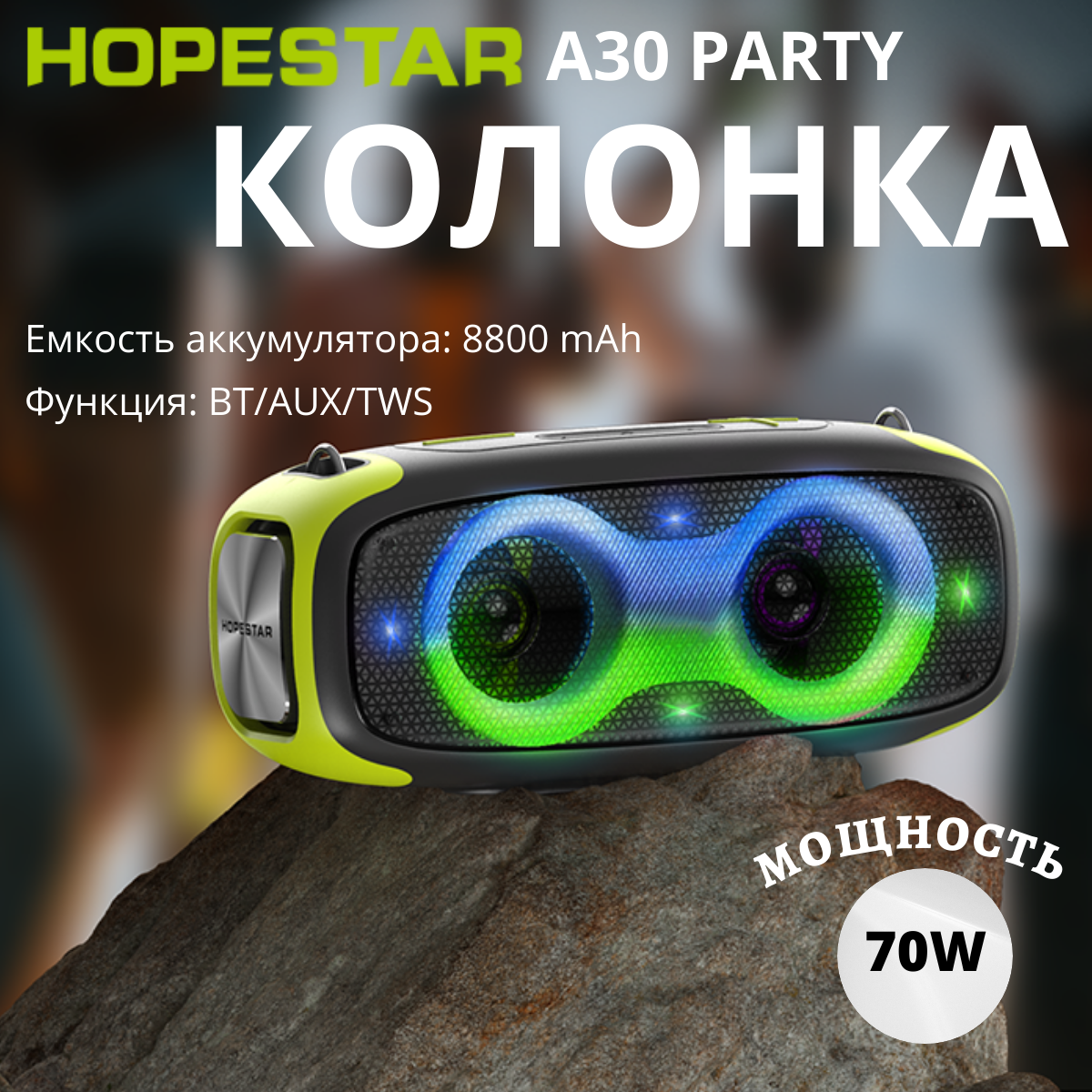 Беспроводная Bluetooth колонка Hopestar A30 PARTY 70W / 8800mAh черная интересное: