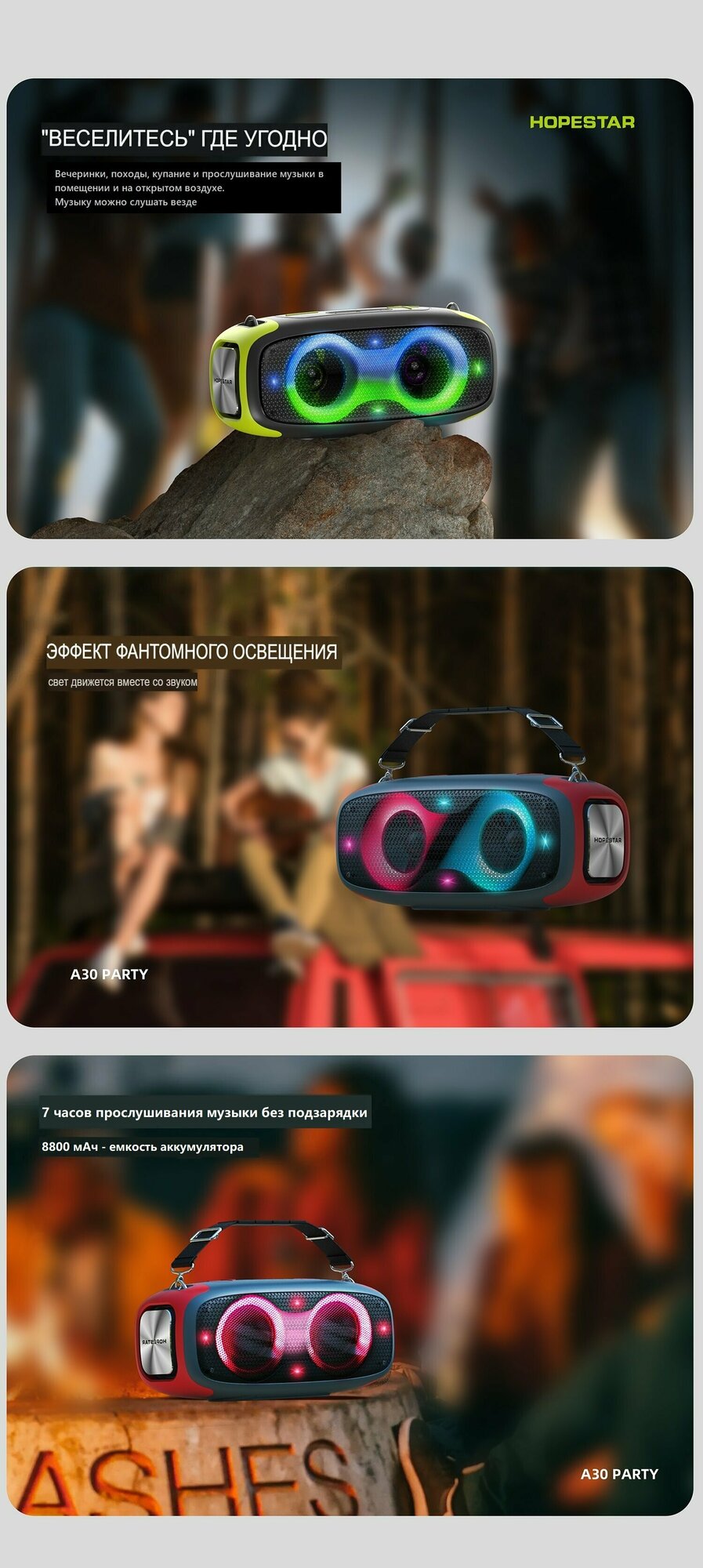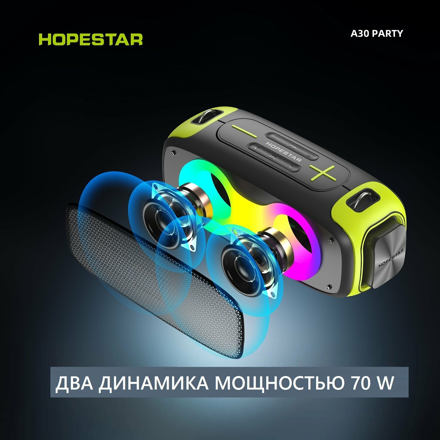Беспроводная Bluetooth колонка Hopestar A30 PARTY 70W / 8800mAh интересное: