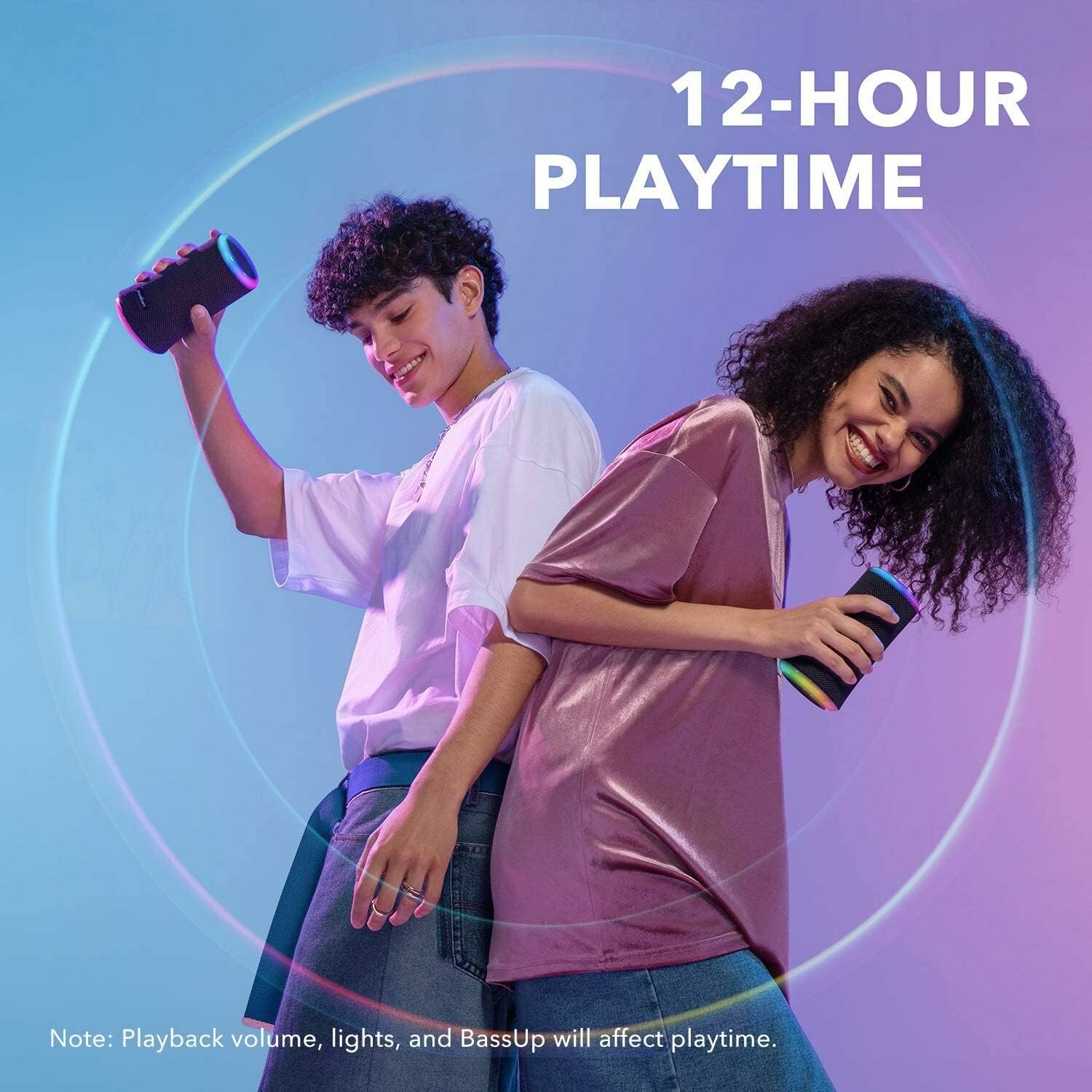 Портативная колонка Soundcore Flare 2 / Блютуз колонка / Bluetooth колонка / Колонка для вечеринок / Колонка со светомузыкой, синий